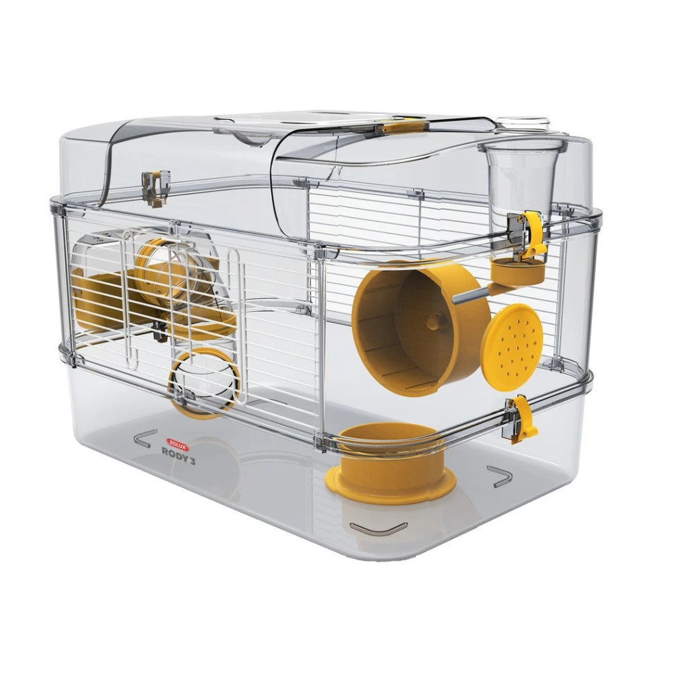 Contient : une cage rody 3 solo dimension : 28 cm de haut, 41 cm le longueur, 27 cm de large avec cette cage inclus les accessoires suivant.